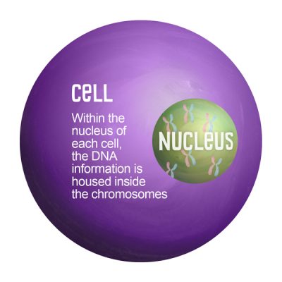 DNA = Genetic material that is responsible for all characteristics, such as how an animal looks and behaves. It is organized into chromosomes.